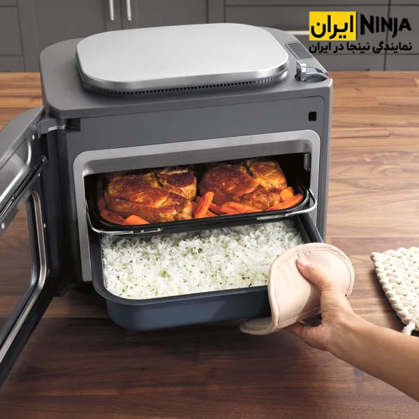 دیگر وقت آن رسیده تحولی شگرف در آشپزی روزمره تان ایجاد کرده و به جای ایستادن پای اجاق گاز و کار با قابلمه و ماهیتابه خیلی آسان و سریع با فر و مولتی کوکر رومیزی نینجا مدل SFP700 انواع غذاهای متنوع و خلاقانه را بپزید. انواع برنامه های پخت پیش فرض این امکان را فراهم کرده تا بتوانید بسیاری از غذاها، کیک و دسرها را تهیه کرده و در مهمانی ها به جای بودن در آشپزخانه مدت زمان بیشتری را از دورهمی هایتان لذت ببرید. شما می توانید این محصول ارزشمند را با تخفیف ویژه، قیمت مناسب و گارانتی اصلی از فروشگاه اینترنتی نینجا ایران خریداری کنید.