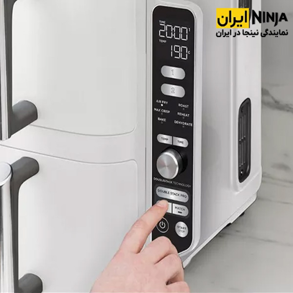 از دیگر ویژگی های مهم این سرخ کن دوقلو ninja SL400 می توان به دکمه انتخاب برنامه، سوییچ بین محفظه 1 و 2، تنظیم دما از 40 تا 240 درجه سانتی گراد و تعین زمان به طور دستی، پخت همزمان 4 وعده در 2 سبد، اعمال تنظیمات مشابه روی هر دو سبد، پایان همزمان فرایند پخت برای دو سبد و خاموش شدن خودکار اشاره کرد. اگر در هر کشو از برنامه ها، دما و زمان پخت متفاوتی استفاده کند، عملکرد SYNC تضمین می کند که ظروف هر دو کشو به طور همزمان آماده شوند.