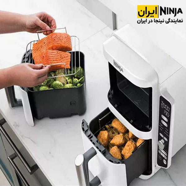 سرخ کن دوقلو نینجا مدل SL400 رنگ سفید دستگاهی باریک با طراحی دو طبقه روی هم بوده که با وجود دو محفظه پخت یکی در بالا و دیگری در پایین و همچنین تقسیم هر محفظه با سبد به 2 قسمت امکان طبخ غذا تا 4 مدل متنوع را فراهم کرده تا سلیقه و ذائقه های مختلف را در هنگام تهیه غذا پوشش دهد. شما می توانید این محصول مدرن و حرفه ای را با تخفیف ویژه، قیمت مناسب و گارانتی اصلی از فروشگاه اینترنتی نینجا ایران خریده و آشپزی را با لذت بیشتری انجام دهید.