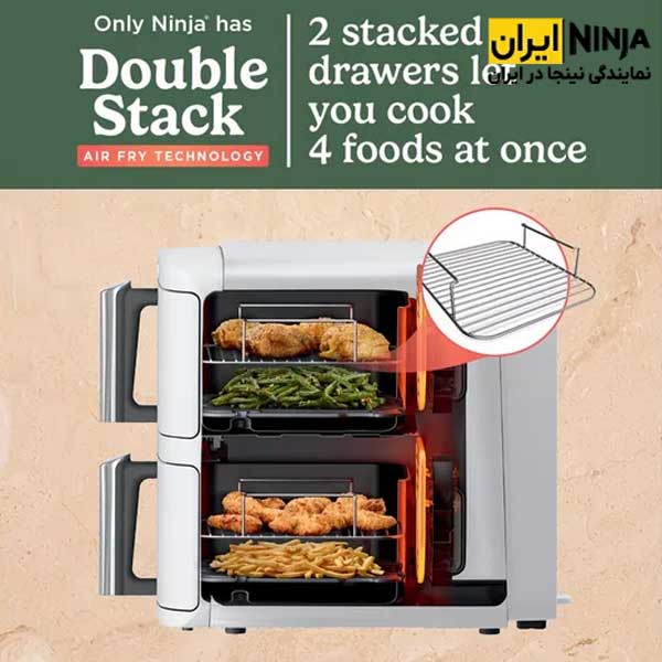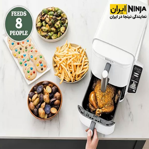 توسط سرخ کن ninja Double Stack sl400 می توانید انواع غذاها، تنقلات سالم و کیک ها را از جمله استیک گوشت، ماهی، مرغ شکم پر، مرغ سوخاری تکه تکه شده، میگو، جوجه، بادمجان کبابی، غذاهای گیاهی، سبزیجات، کلم بروکلی، اسفناج، اسنک، پیتزا، کیک، کاپ کیک، سیب زمینی و قارچ سرخ شده، میوه های خشک شده و … را به سادگی و سریع آماده کنید.