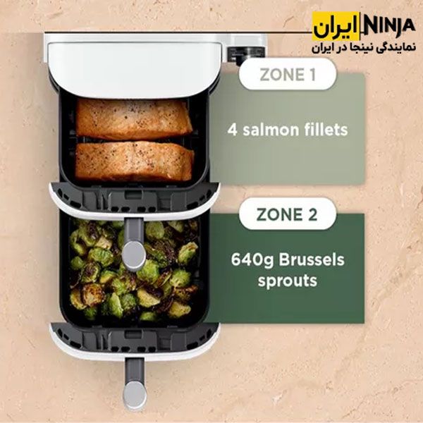 همیشه سرعت در آشپزی در کنار کیفیت پخت حرف اول را می زند. این سرخ کن با توان 2470 وات به کارها سرعت بخشیده و آشپزی سریع تر و راحت تری را تجربه خواهید کرد. طبخ غذاها تا 55٪ سریع تر از فر، مزیت مهم این محصول بوده که می توانید در دورهمی هایتان مهمانان زیادی را دعوت کنید و خیلی راحت برایشان یک سفره رنگی با انواع غذاهای متنوع و لذیذ را آماده کنید. طراحی نوآورانه و جدید 2 طبقه رو هم، برای پخت چندین مدل غذاهای متنوع، کارآمد می باشد. وجود دو منطقه کنترل شده مستقل با منابع حرارتی در عقب، هر وعده غذایی به طور یکنواخت پخته و به زیبایی ترد می شود.