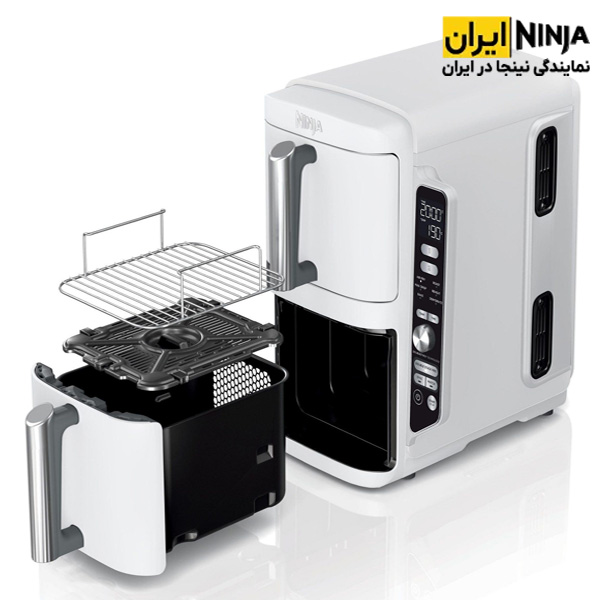 سرخ کن نینجا مدل SL400 به رنگ سفید با طراحی منحصر به فرد و مدرن نظر هر سخت پسندی را به خود جلب می کند. این سرخ کن زیبا با طراحی دو طبقه روی هم و ابعاد باریک تر نسبت به دیگر مدل های دوقلو برای فضاهای کم و آشپزخانه های کوچک ایده آل بوده و در مقایسه با سایر دستگاه ها در این زمینه 30 درصد فضای کمتری را اشغال می کند. نگاه به باریک بودن دستگاه نکنید. این سرخ کن با گنجایش عالی 9.5 لیتر ظرفیت کافی برای پخت و پز تا 8 نفر را فراهم می کند.