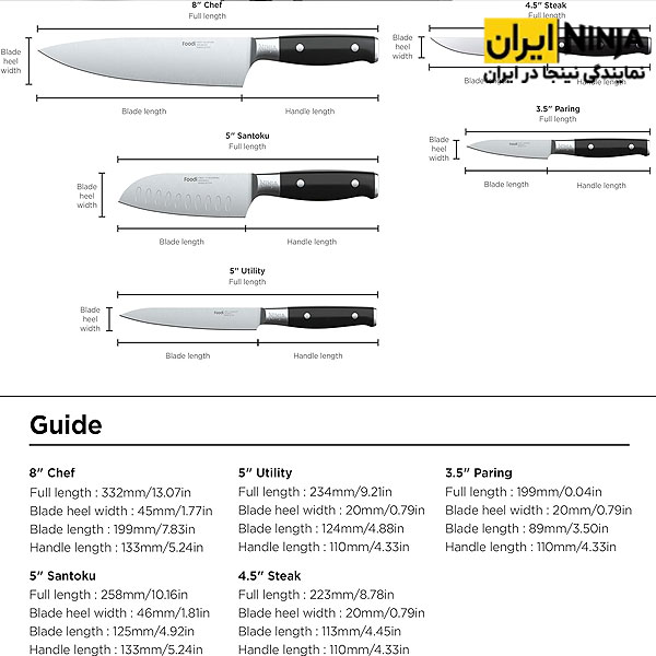 • جنس تیغه چاقوها: استیل ضد زنگ